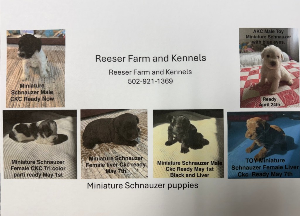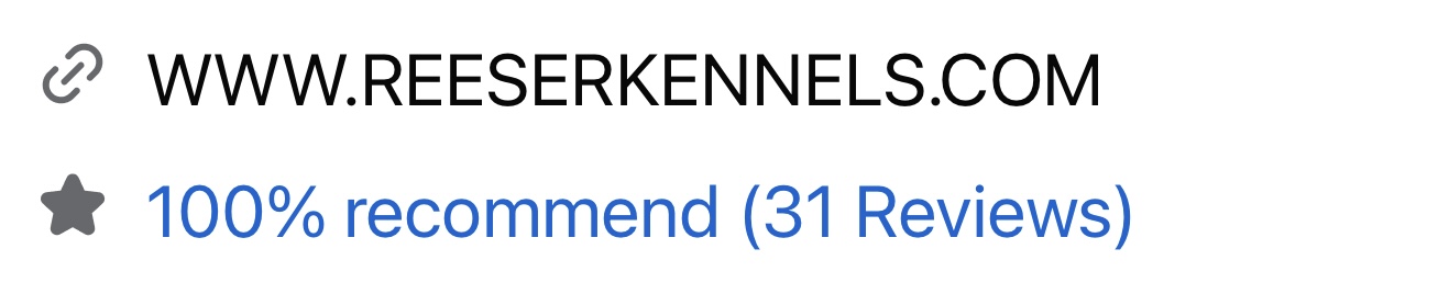 Feel free to contact us at 502-921-1369 or by email at Reeserfarms@yahoo.com or visit our Facebook Page at Reeser Farm and Kennels to see our reviews. We will be happy to answer any questions you may have. Thanks pooand have a wonderful day!