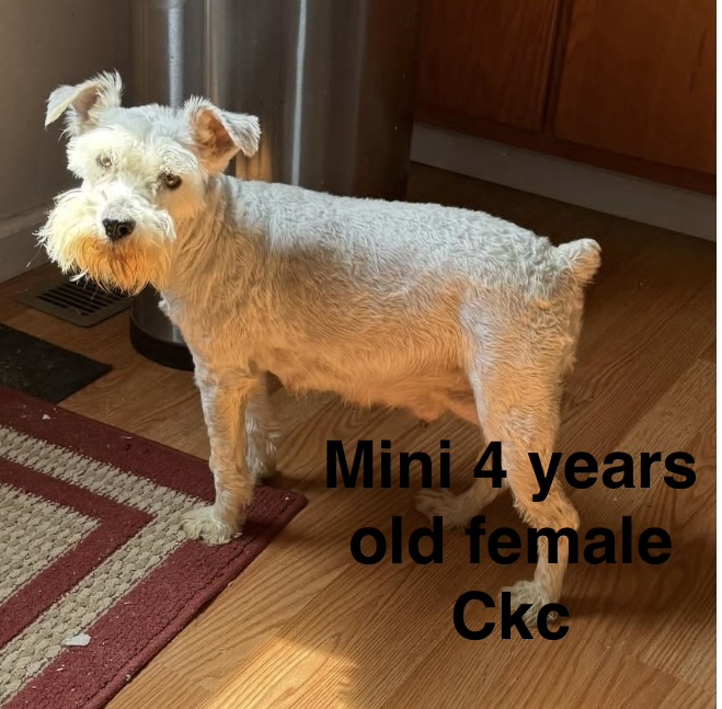 Standard size Miniature Schnauzers (ours are 14-20 pounds) are Ckc $700 non registered and $800 Ckc registered. AKC $800 non registered and $900 AKC registered.